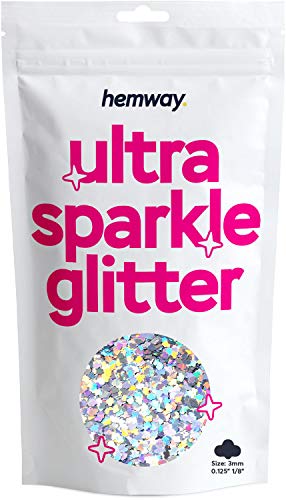 Hemway Ultra Sparkle Glitter - 1/8" 0.125" 3mm - Cloud Sequin Glitter, Arts, Crafts, Nail, Body And Face - Silver Holographic - 50g