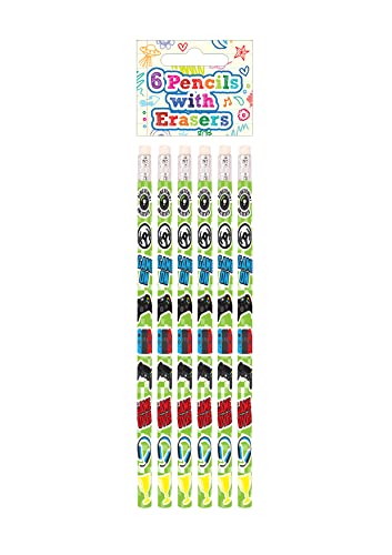 Confezione da 6 matite da scrittura per bambini con gomma superiore e design dei cartoni animati.