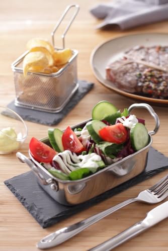 HENDI Mini teglia per arrosti, con maniglie, piccola teglia da forno, contenitore di cottura, da servire e da portata per appetizers, insalate, verdure, 196x94x(H) 70mm, inox