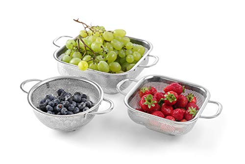 HENDI Scolapasta da cucina, cestello, colino, per cucinare e lavare pasta, verdure, frutta, insalate, quadrato, forato, con base e 2 maniglie, 240x169x(H)65 mm, acero inoxidable