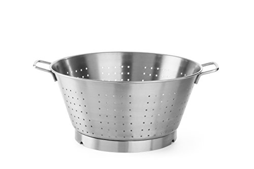 HENDI Scolapasta da cucina, cestello, colino, per cucinare e lavare pasta, verdure, frutta, insalate, rotondo, forato, con base e 2 maniglie, ø415x(H)210 mm, acero inoxidable