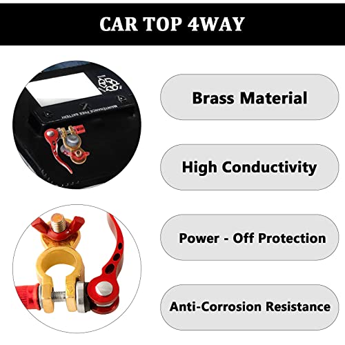 Morsetti a 4 vie per batteria auto: 4 vie sono inclusi in un connettore della batteria, morsetti a morsetto in rame sono progettati per il collegamento multicanale. Facile da usare: basta collegare i morsetti della batteria in base ai vantaggi e agli svantaggi del manico nella posizione corretta e collegare la batteria per completare l'installazione, il che è molto conveniente.
