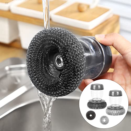 HENGBIRD Spazzola per Piatti con Dispenser, 2 Pezzi Set Di Spazzola Piatti Manuale, Spazzola Manuale Lavapiatti con Erogatore Detergente e 2 Testa della Spazzola per Pulizia Pentole, Padelle, Lavelli