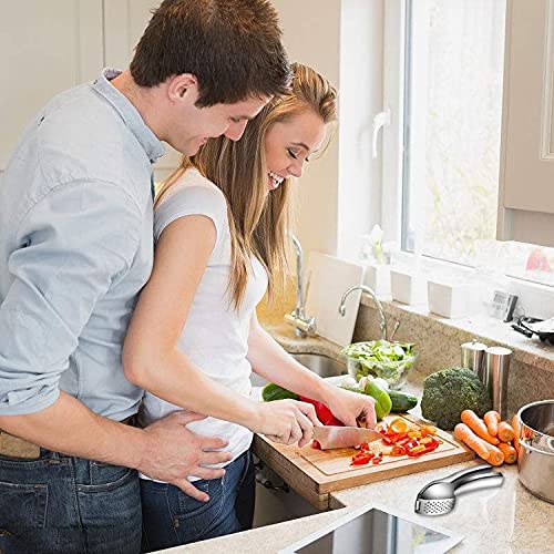 HENGBIRD Spremiaglio, taglia-aglio con filtro pieghevole, zenzero Smasher aglio, lavabile in lavastoviglie, in lega di alluminio (argento)