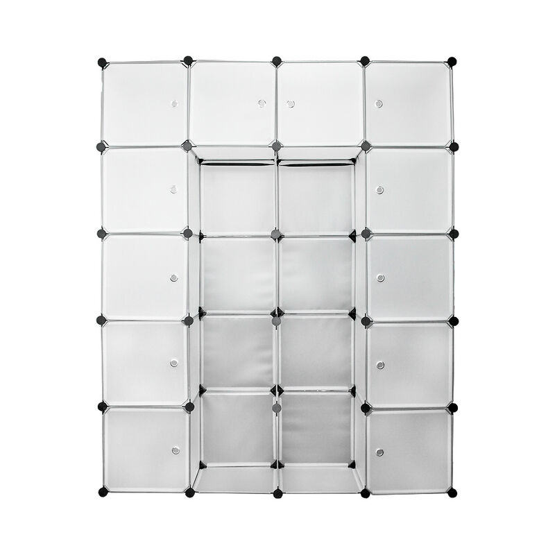 Vantaggi degli armadi a cubo fai-da-te rispetto ai tradizionali armadi in legno: 1. I cubi modulari impilabili sono una soluzione di archiviazione economica ed elegante adatta per l'uso in casa, in ufficio o nel dormitorio universitario. 2. Offre molto spazio di archiviazione, eccellente stabilità e facile manutenzione e ulteriore divertimento fai-da-te. 3. Con 20 scomparti, puoi riporre i tuoi oggetti singolarmente, risparmiare spazio e mantenere la tua stanza pulita e in ordine. 4. I materiali ecologici di alta qualità sono adatti per l'uso domestico. Leggero, compatto, facile da smontare e spostare. Questa non è un'opzione costosa ma completamente multifunzionale! 20 scatole / Specifiche del prodotto - Dimensioni: 180 x 142 x 37 cm (A x L x P) - Materiale: plastica PP (piastra) + plastica ABS (connettore) - Colore: bianco semitrasparente - Capacità di carico massima per cubo: 10 kg Fornitura: - 63 fogli in PP (35 x 35 cm, bianco semitrasparente) - 12 ante (35 x 35 cm, bianco