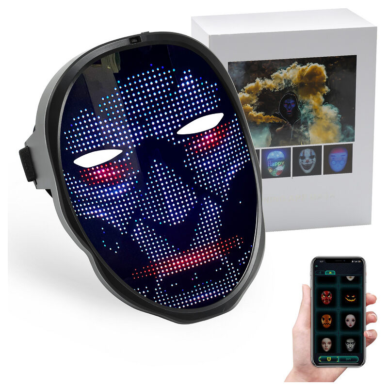 2022 Tecnologia del divertimento - Maschera LED personalizzata con cinghie regolabili. adatta per cosplay. carnevale. festa. danza. festival di musica elettronica. ecc. Fatevi notare e attirate l'attenzione della folla. l'attenzione del pubblico. 【Gesture per cambiare il tuo viso】 Cambia stile liberamente. modelli cool. La modalità interruttore gestuale è attivata. coprire il sensore con la mano. La mano rimane immobile a 5 cm dal sensore di distanza per 5 secondi. Quando viene visualizzato "OK". il gesto è attivato;