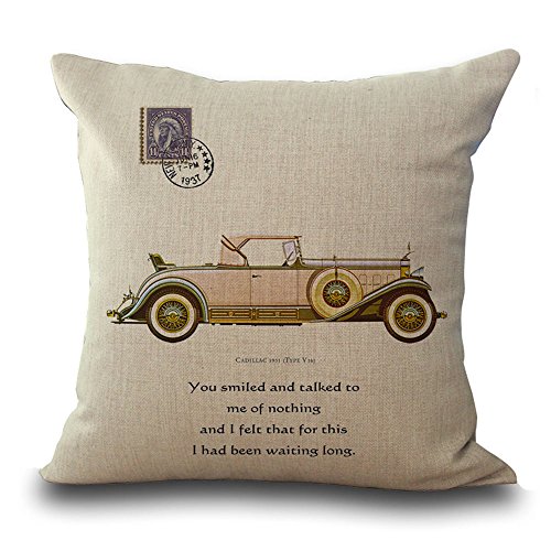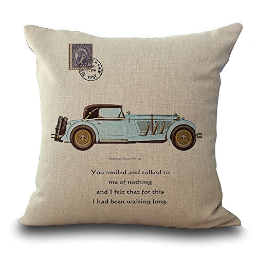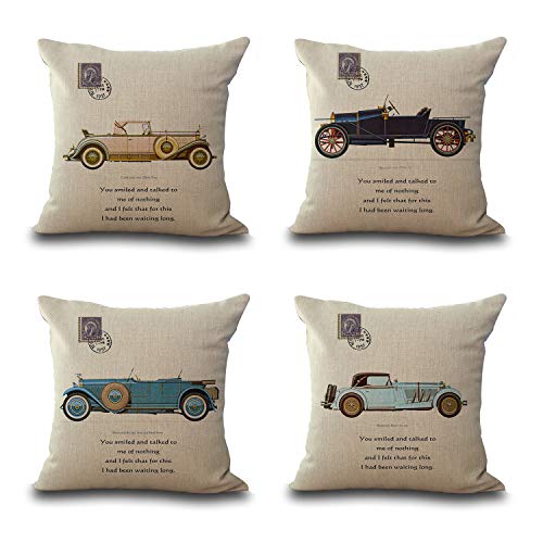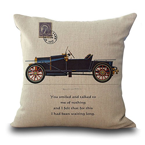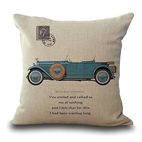 Hengjiang - Federa per cuscino in cotone e lino, motivo auto vintage
