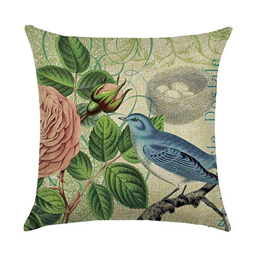 Hengjiang vintage Bird Home federa cotone lino divano letto federa Decor Square Tropical Style doppio cuscino Parrot 12