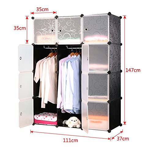 HENGMEI Armadio per guardaroba, sistema di scaffalatura, 12 scatole, scarpiera con porta (nero)