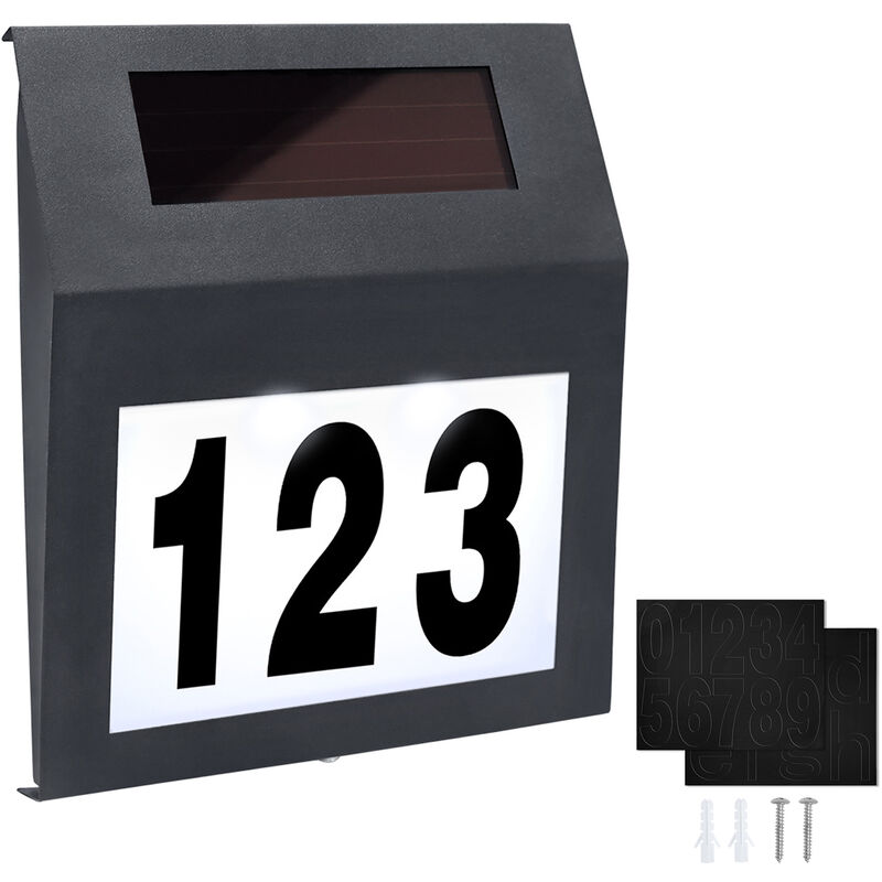 Descrizione: Impermeabile, resistente al calore e durevole struttura in plastica dura in acciaio inox per resistere a vento, pioggia, neve, ghiaccio e così maltempo. Rilevamento automatico di giorno o notte, si ricarica tramite pannello solare durante il giorno e si illumina automaticamente di notte. Durante l'installazione di viti è necessario rimuovere la parte inferiore del coperchio posteriore aperto, interruttore a levetta in posizione no. Funzione: il numero civico corrispondente scritto sulla piastra può vedere chiaramente l'indirizzo della propria casa durante la notte. Dati tecnici: Colore: argento. Materiale: plastica e acciaio inossidabile. Dimensioni: circa ): 20 x 18 x 3 cm. Pannello digitale: 14,5 x 9 cm. Classe di protezione: IP65. Numero di LED: 2 LED. Lumen: 30 lm. Durata LED: 10 W ore. Capacità batteria: 1,2 V/600 mAh. Tempo di esposizione al sole: 5-8 ore. Illuminazione effettiva: 6-8 ore. Si prega di notare che l'articolo deve essere caricato per 24 ore prima di