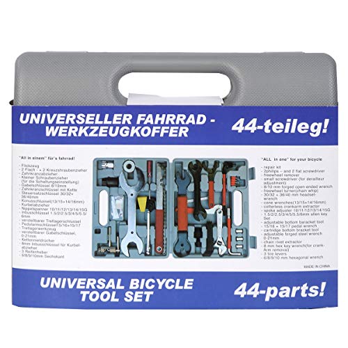 Questo kit di attrezzi per biciclette è abbastanza resistente per riparare pneumatici, freni, luci e catene, e gli attrezzi da 44 pezzi possono soddisfare tutte le esigenze di riparazione della bici.