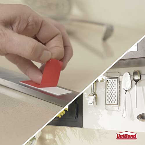 Contenuto della confezione: Unibond No More Nails Strisce permanenti, forte nastro biadesivo per lavori di montaggio all'interno e all'esterno della casa, per la maggior parte dei materiali*, può contenere fino a 3 kg, impermeabile, bianco, confezione da 42 IT