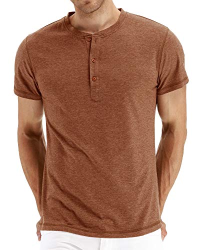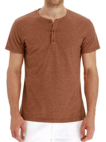 Henley Shirt T-Shirt Casual da Uomo a Maniche Corte in Cotone Classico Estivo da Uomo UP-M-00035-Brick Red-L