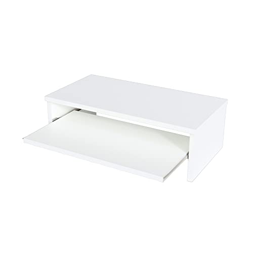 Henor Supporto monitor Rialzo Tv con vassoio estraibile Legno 62 x 32 x 18 cm. Portata 50 kg. Bianco