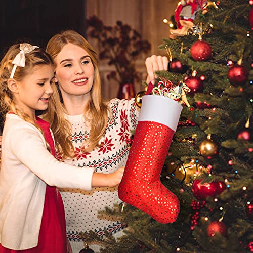 Facile da appendere: c'è un anello sulla parte superiore della calza rossa di Natale, che può essere facilmente appeso all'albero di Natale, camino, ringhiera delle scale, muro e utilizzato per la decorazione di feste o vacanze.