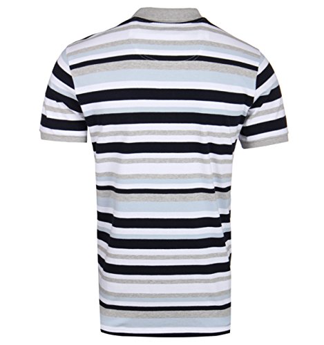 Henri Lloyd Fargim Grey, White & Blue Stripe Pique Polo Shirt-MEDIUM