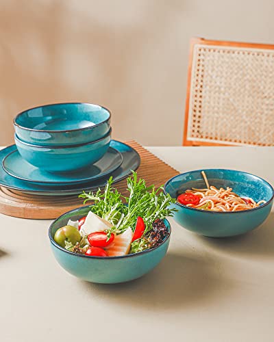 HENXFEN LEAD 530mL Insalatiera con Disegno Classico, Set di 4 Ciotole Circolare in Ceramica, Zuppiera di Moda Squisita per 4 Persone, Lavabile in Lavastoviglie, Squisito Porcellana, Blu