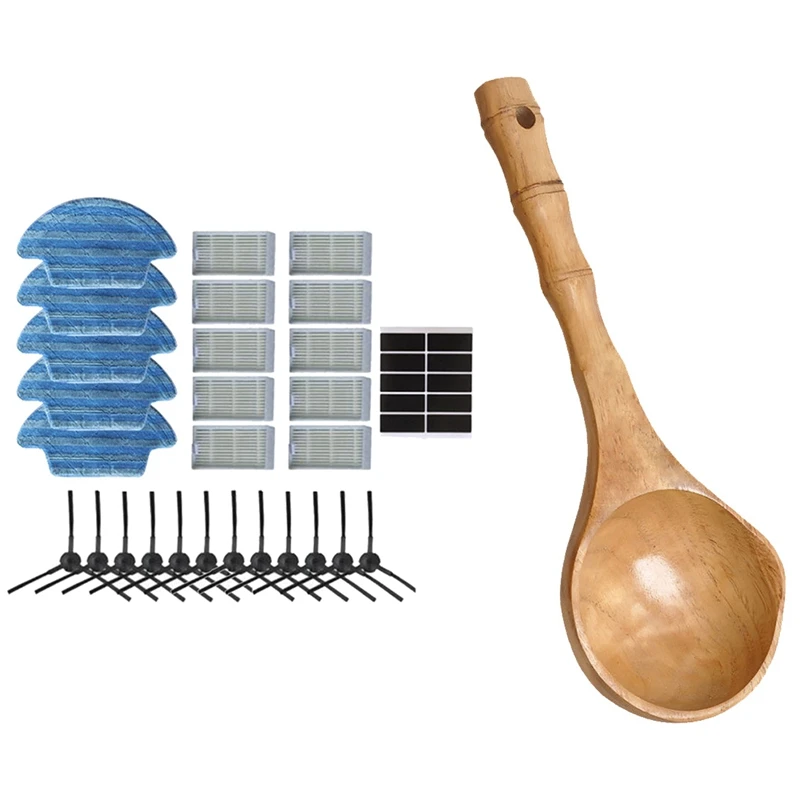 HEPA Filter Side Brush Filter Mop Cloth With Wooden Ladle Spoon Cooking Corner Spoon Kitchen Spoon