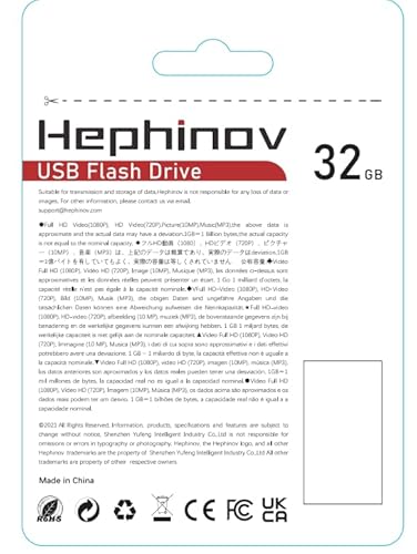Hephinov Chiavetta USB 32GB, USB 2.0 Flash Drive, Memoria USB Stick con Rivestimento in Metallo Resistente ed Elegante, PenDrive per PC Computer Tablet TV Auto