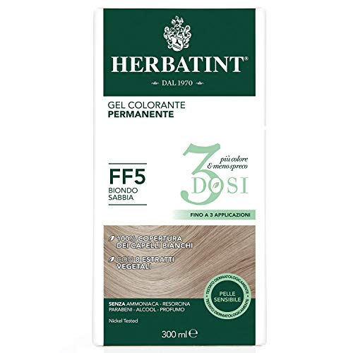 Herbatint - Gel Colorante Permanente - Colore FF5 BIONDO SABBIA (3 Dosi - 300 ml) | Senza Ammoniaca, con 8 estratti vegetali, adatto anche a pelli sensibili