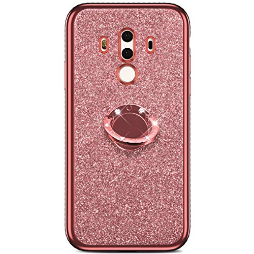 Herbests Compatibile con Huawei Mate 10 PRO Cover Caso, Copertura in Silicone con Anello Ring Supporto Custodia Brillantini Glitter Bling Strass Diamante Placcatura TPU Silicone Case Cover,Oro Rosa