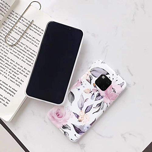 Herbests Compatibile con Huawei Mate 20 Pro Cover in Silicone Custodia Ultra Sottile e Morbida Cover TPU Silicone Bumper Case [Shock-Absorption] Slim Soft Custodia,Fiore rosa