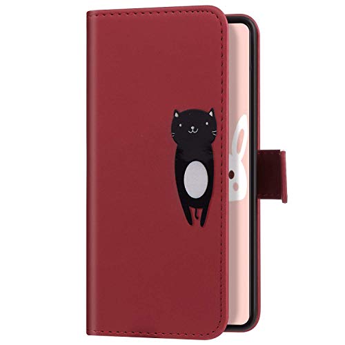 Herbests Compatibile con Samsung Galaxy S10e Cover, Custodia PU Portafoglio Pelle Flip Libro Cover 3D Cartoon Gatto Custodia con Supporto Porte Carte Anti-Scratch Antiurto Cover,Rosso