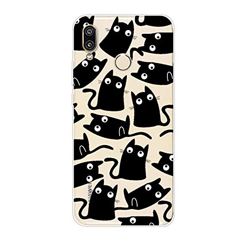 Herbests Compatible per Huawei P20 Lite Custodia del Silicone, Copertura Belle Carino Cute Dipinto Trasparente Cover Slim Soft Back Case Crystal Clear TPU Silicone Custodia,Gatto Nero