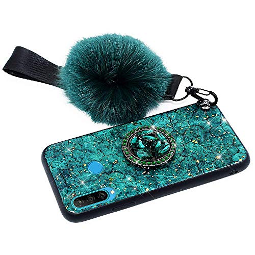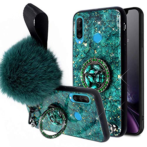 Herbests Compatible per Huawei P30 Lite Custodia Ultrasottile Silicone Cover con Anello Sparkle Glitter Bling a Strass + Hairball Case Cover Antiurto Anti Scratch Custodia,Verde