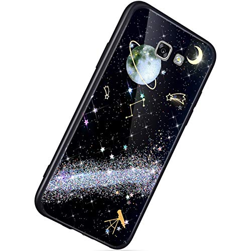 Herbests Compatible per Samsung Galaxy A5 2017 Cover Silicone Nero Custodia Paillettes Glitter TPU Protettiva Case Serie del Universo Ultrasottile Morbida Gomma Custodia,Argento