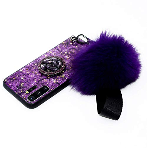 Herbests Compatible per Samsung Galaxy Note 10 Plus Custodia Ultrasottile Silicone Cover con Anello Sparkle Glitter Bling a Strass + Hairball Case Cover Antiurto Anti Scratch Custodia,Viola
