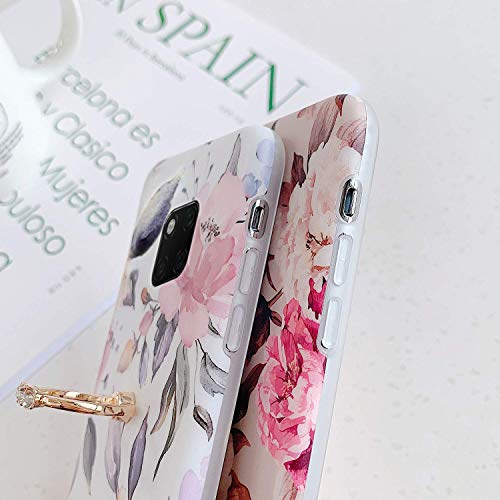 Herbests Cover Compatibile con Huawei Mate 20 Pro - Custodia Morbida in Silicone Cover Ultra Sottile Elegante Fiori Custodia Glitter con Anello Supporto Cover TPU Bumper Antiurto,Grigio