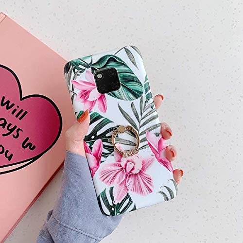 Herbests Cover Compatibile con Huawei Mate 20 Pro Custodia Morbida in Silicone Gel Cover Ultra Sottile Elegante Fiori Custodia con Anello Supporto Cover Case TPU Bumper Antiurto,Rosso
