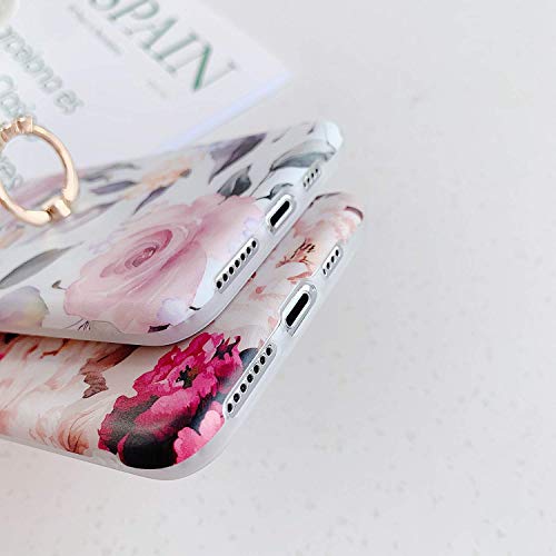 Herbests Cover Compatibile con iPhone 11 Pro - Custodia Morbida in Silicone Cover Ultra Sottile Elegante Fiori Custodia Glitter con Anello Supporto Cover TPU Bumper Antiurto,Rosso