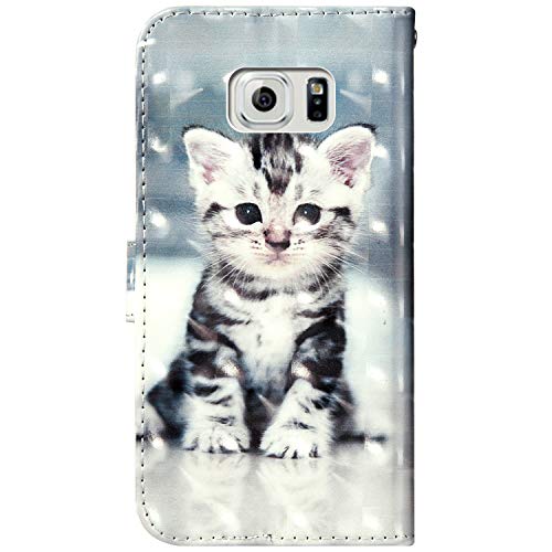 Herbests Cover Compatibile con Samsung Galaxy S6 Edge Plus - Custodia Protettiva Portafoglio in Pelle PU Flip Case Disegni Colorate Cover a Libro Book-Style Custodia con Magnetica,Gattino