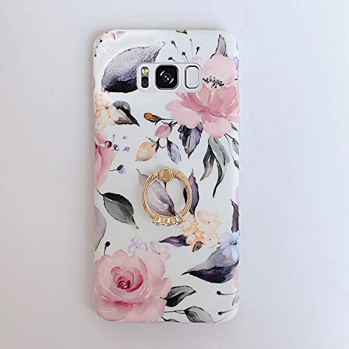 Herbests Cover Compatibile con Samsung Galaxy S10e - Custodia Morbida in Silicone Cover Ultra Sottile Elegante Fiori Custodia Glitter con Anello Supporto Cover TPU Bumper Antiurto,Rosa