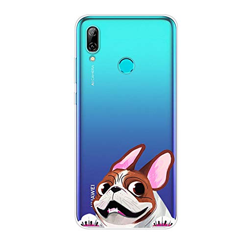 Herbests Cover compatible con Huawei P Smart 2019 Custodia Silicone, Copertura Belle Carino Cute Dipinto Trasparente Cover Slim Soft Back Case Crystal Clear TPU Silicone Custodia,Cane Rosa