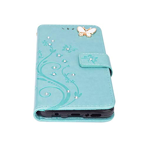 Herbests Custodia Compatibile con Huawei P20 Lite, Cover Portafoglio Lusso Bling Brillantini Strass Farfalla Fiori Case Cover in PU Pelle Case [Funzione di Supporto, Carte Slots],Verde