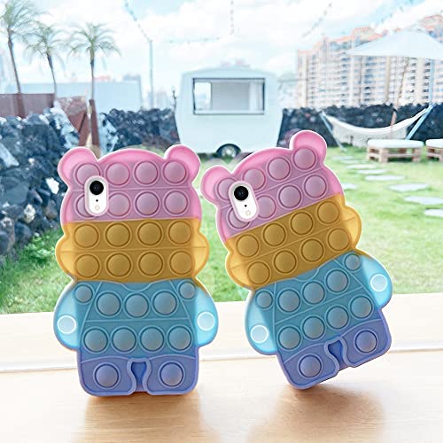 Herbests Custodia Compatibile con iPhone XR Cover Bubble Stress Relief Custodia Morbida in Silicone Fidget Sensory Toy Pop Cover TPU Bumper Antiurto Antistress Case, Orso
