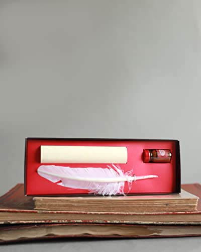 Kit di scrittura che compende: 1 penna d'oca, 1 foglio pergamena, 1 flacone di inchiostro calligrafia 10 ml e istruzioni d'uso con esempi di scrittura carolina