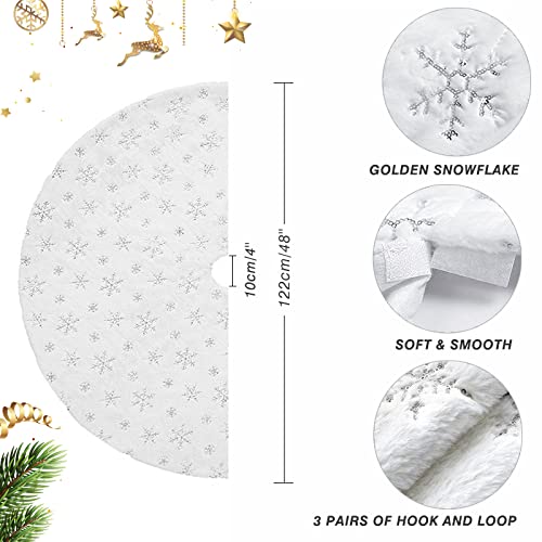 Herbst 122 cm Gonna Albero di Natale, Copri Base Albero Natale Bianca con Glitter Argento Fiocchi di Neve, Tappeto Albero di Natale Rotondo per Natale, Vacanze, Nuovo Anno