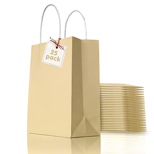 Herbst 25 Pcs Sacchetti di Carta con Manici, 21x15x8 cm Sacchetti Kraft, Riutilizzabile Shopper Carta, Sicuro ed Ecologico Buste Regalo Cottura al Forno per Festival/Feste/Matrimonio (Giallo Mandorla)