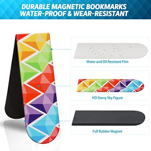 【Robusto e Durevole】 Questi segnalibri sono realizzati con carta per pittura a olio impermeabile resistente e sicura e materiale magnetico morbido. Il motivo è chiaro e non facile da sbiadire e l'attrazione magnetica è ferma e non facile da staccare. Portano diversi colori nella tua vita e garantiscono una lunga durata.