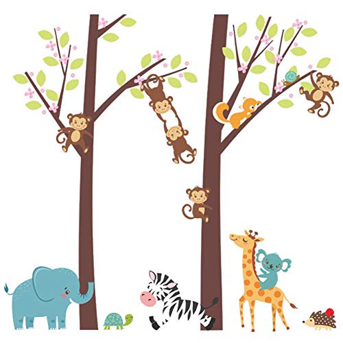 HERCHR Adesivi murali Animali Scimmia Giraffa per Soggiorno Bambini Camera da Letto per Bambini