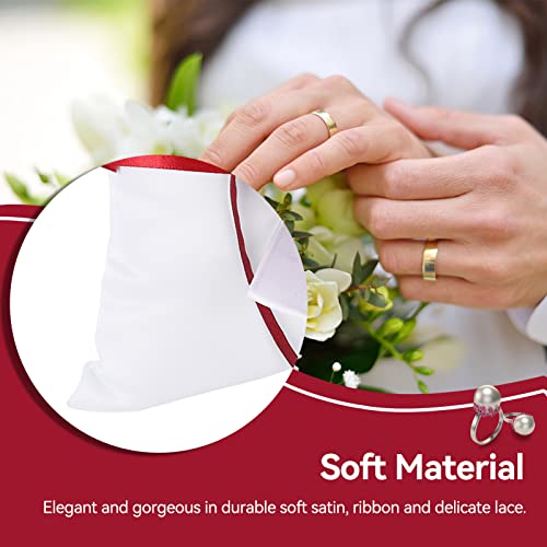 【Materiale morbido】: il cuscino per portatori di anelli ha un raso morbido resistente, un nastro e un pizzo delicato con un aspetto elegante e splendido