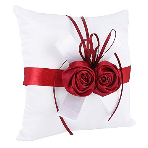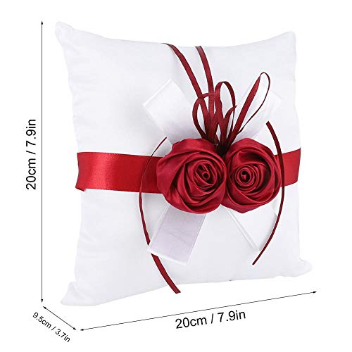 【Cuscino per fedi nuziali】 Il cuscino per fedi adotta il romantico metodo di abbellimento della rosa rossa, che rende pieno il senso visivo generale, l'abbellimento simmetrico è perfetto, porta un'atmosfera calda in oaacasion