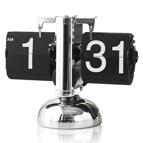 HERCHR Flip Desk Clock, Retro Digital Flip Down Clock, Retro Minimalista Singolo Piede Meccanico Automatico Flip Clock Orologio da Tavolo Display Digitale per Soggiorno Domestico(Nero)