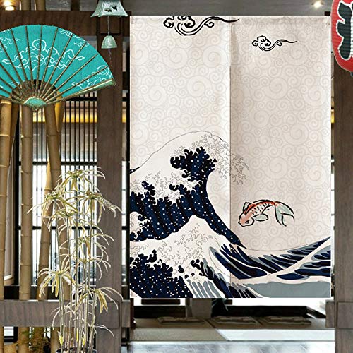 HERCHR Giapponese Noren Tenda,Tende a Vetro,Tende Classiche e Drappeggi,Tende per Finestre,Tende Cucina Porta Finestra per la Decorazione della Porta di Casa o Ristorante,85×120 cm