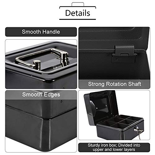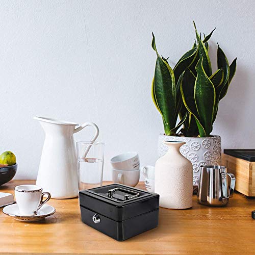 HERCHR Mini Cassa con Serratura a Chiave, Cassetta di Sicurezza in Metallo con Doppio Strato 5,9 x 4,72 x 2,95 Pollici(Nero)
