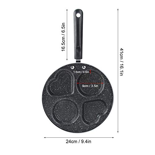 HERCHR Padella Pancake Antiaderente,Pentola per Friggere,Padella per Pancakes,Padella per Crepes Uova a 4 Stampi Fori Pancake Piastra Rotondo e di Cuore Forma,in Alluminio,41 x 24 x 2.5 cm
